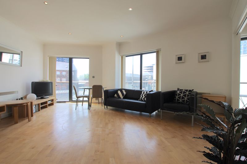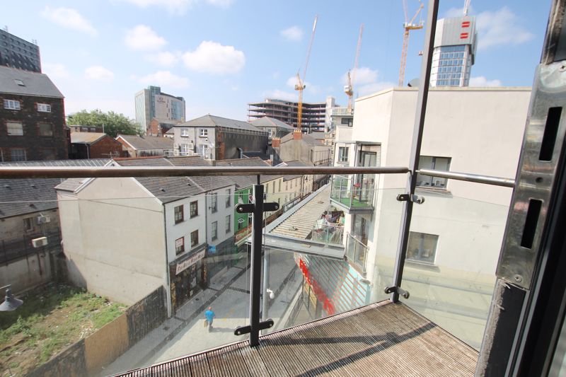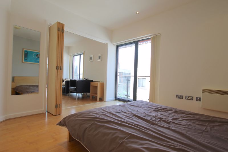 As you enter the hallway of the apartment you are met with the spacious, newly refurbished bathroom to your left and a storage cupboard to your right. As you move forward you will be greeted with the open plan kitchen living area, fully furnished throughout with balcony over looking Caroline street. To the right of the living room you will find the large double bedroom, this can be secluded from the living by the interior by folding floors. Bedroom leads onto the large second balcony which overlooks the Brewery quarter.