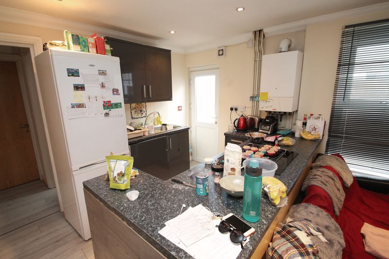 Modern fitted kitchen with white goods. There is also a large communal bathroom with bath and shower over it. This property also benefits from a rear private garden.
