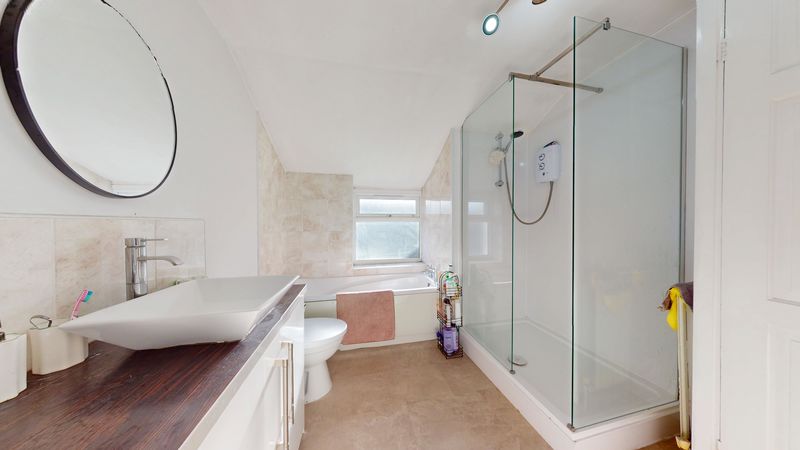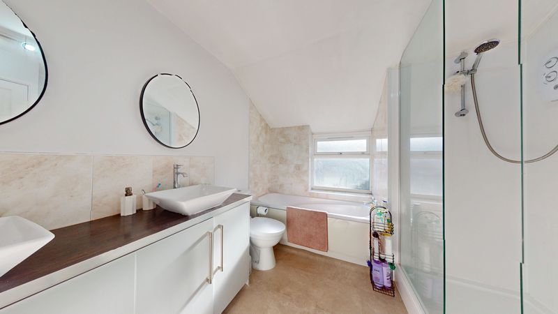 Upstairs, the first floor features a well-finished family-sized bathroom and two generous double bedrooms, both filled with natural light and offering comfortable accommodation.