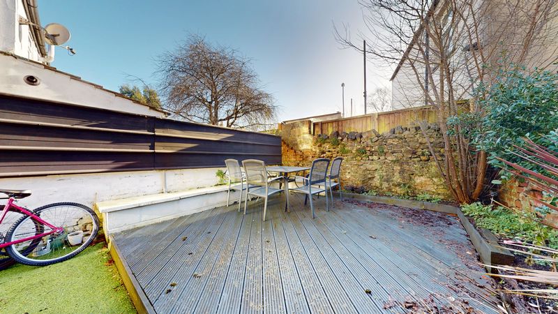 The ground floor boasts a bright and inviting open-plan living and dining area, thoughtfully laid out to create a welcoming space. A charming working log burner provides a cosy focal point, while the separate kitchen leads directly out to the rear garden. Outside, the spacious low-maintenance garden is fully slabbed, offering minimal upkeep while holding for some further potential.